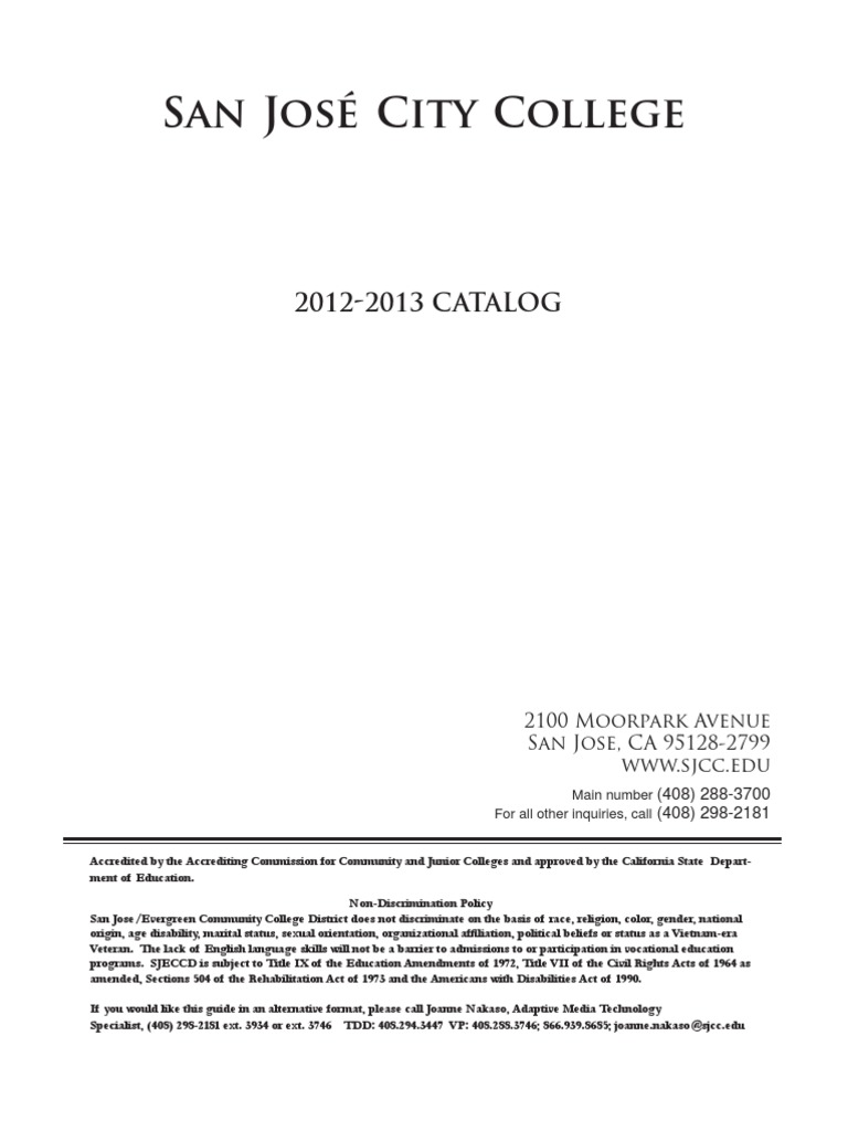 SJCC Catalog 201213final PDF Curriculum University And College Admission